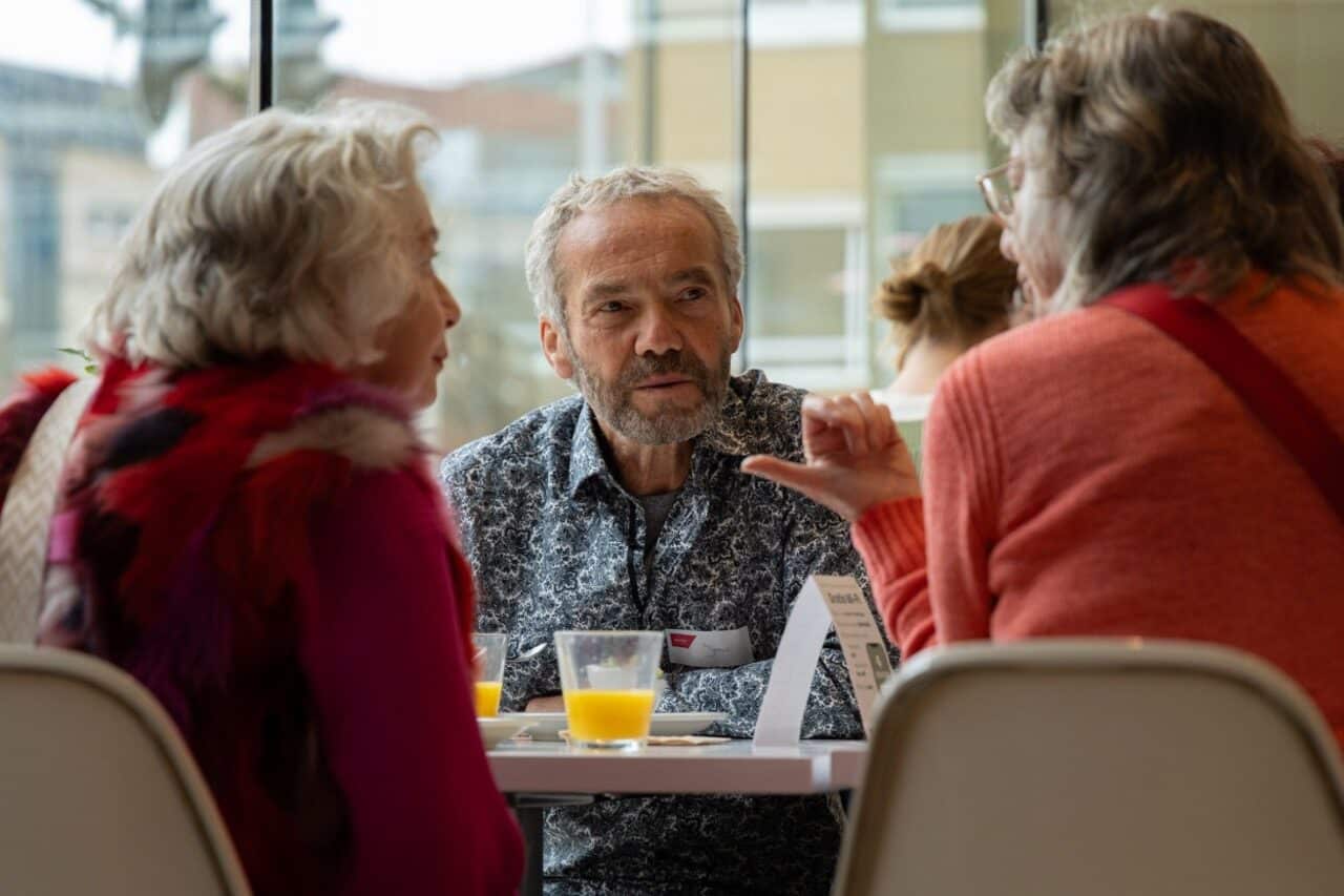 Er volgt binnenkort nog een korte filmimpressie en een fotoverslag. Voor de mensen die niet geweest zijn en toch willen weten hoe de bijeenkomst eruitzag. En voor degenen die wel geweest zijn: een korte terugblik op een fijne contactdag. Wat ons betreft gaan we het vaker zo doen. Ook de locatie (Eenhoorn in Amersfoort) scoorde hoge ogen. In het midden van het land, goed bereikbaar met auto en ook met het openbaar vervoer. Volgens de telling zijn er tachtig stappen nodig tussen het Stationsplein en de ingang van het gebouw van de Eenhoorn. Onze stappenteller gaf een hoger aantal aan, maar dat kan ook komen doordat we kleine stappen zetten.